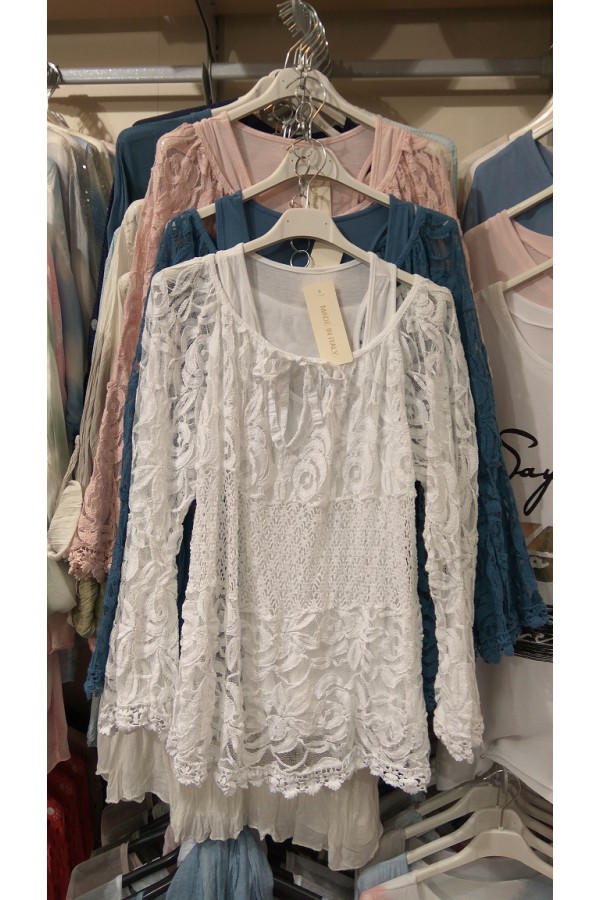 Bluzka koronkowa na podszewce rękaw poszerzany, jeden rozmiar.